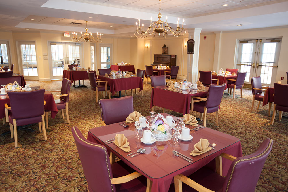 In each of AdviniaCare’s restaurant-style dining rooms, residents enjoy three meals a day in elegant style. In spring and summer, weekly cookouts bring dining outside to our large patio areas. Just choose a dish from our local-inspired menus, featuring seasonal and ethnic specialties.